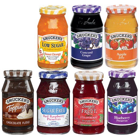 Shop Smucker's® Products: Jellies, Syrups, & More - WebstaurantStore Smucker's fruit jellies, marmalades, and preserves provide your guests with the perfect topping for their toast, pancakes, or biscuits. View Products. 18 Products. Smucker's Strawberry Jam .5 oz. Portion Cups - 200/Case Smucker's Concord Grape Jelly .5 oz Portion Cups - 200/Case Smucker's Strawberry Jam, Concord Grape & Mixed Fruit Jelly .5 ...