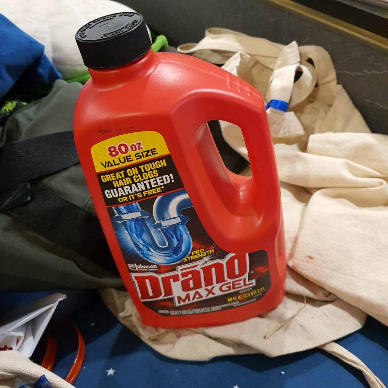 Drano Max Gel Drain Clog Remover and Cleaner for Shower or Sink Drains ... The thick bleach formula in Drano Max Gel Clog Remover cuts right through standing water, clinging to your toughest clogs to blast them fast. It works great to remove hair, soap scum, and other gunky clogs. Each of the two bottles contains 80 oz of Drano Max Gel Clog Remover, so you'll be ready to conquer tough clogs whenever they happen.