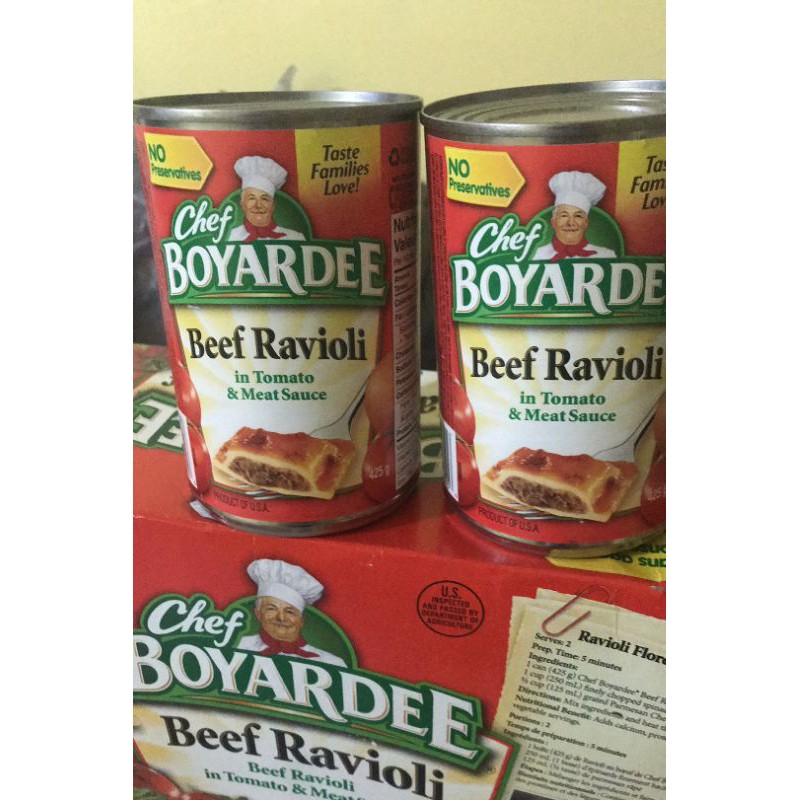 Chef Boyardee Beef Ravioli - Shop Pantry Meals at H-E-B Ingredients Tomatoes (Tomato Puree, Water), Water, Enriched Wheat Flour (Wheat Flour, Malted Barley Flour, Niacin, Reduced Iron, Thiamine Mononitrate [Vitamin B1], Riboflavin [Vitamin B2], Folic Acid), Beef, Crackermeal (Enriched Wheat Flour [Bleached Wheat Flour, Niacin, Reduced Iron, Thiamine Mononitrate, Riboflavin, Folic Acid], May Also …