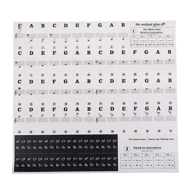 Transparent 49 61 Key Electronic Keyboard 88 Key Piano Stave Note Sticker For White Keys - Buy Piano Keyboard Stickers,Piano Note Stickers,Transparent ...