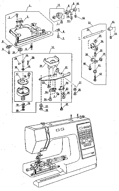 39 sewing machine parts labeled