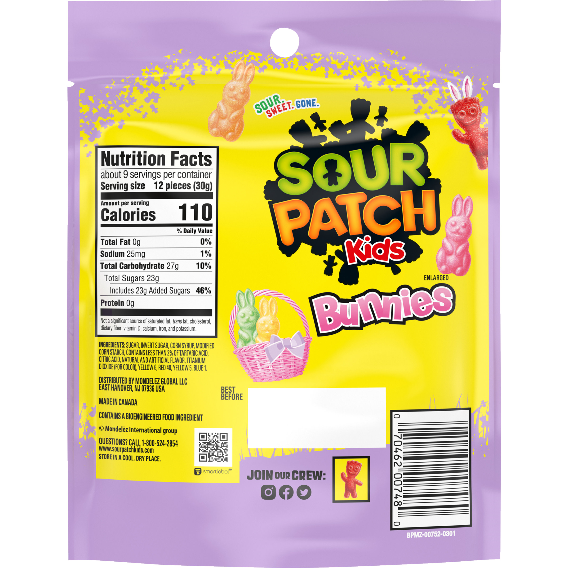 Sour Patch Kids Extreme Sour Allergy and Ingredient Information Sour Patch Kids Extreme Sour Super sour then sweetSour. Sweet. Gone.Fat free, UPC Code 070462001051 Manufactured by Mondelez International. Allergen Inside ... Nutrition Label. Nutrition Facts. Serving Size 40.00 g. Servings Per Container 2.50. Amount Per Serving. Calories 150 % Daily Value* Total Fat 0g. 0%. Sodium 0.025g. Can Dogs Eat Sour Patch Kids? (Vet Reviewed Nutrition Facts) Most Sour Patch Kids candies don't contain xylitol, making them safe (but not healthy) for dogs to eat. However, one type of Sour Patch Kids chewing gum does contain xylitol, as do many sugar-free chewing gums. Xylitol is incredibly toxic to dogs, and even a tiny amount can cause severe illness or death depending on the size of your dog. GHOST® Energy Drink - Faze Pop - 12 Cans | GNC Sour Patch Kids® Redberry Tropical Mango Citrus Sour Patch Kids® Blue Raspberry Swedish Fish® ... Calories : 10 Vitamin C: 90 mg 100%: Vitamin B6: 1.7 mg 100%: Vitamin B12 : 2.4 mcg 100%: Niacin (Vit. B3) ... View Nutrition Label How To Use Blue Raspberry SOUR PATCH KIDS Gelatin Cups | Snack Pack We packed these Juicy Gels with the taste of your favorite blue raspberry sour chewy candy from SOUR PATCH KIDS®. Who knew snack time could get even more fun? All of our gelatin cups are gluten-free and Kosher, and the Snack Pack SOUR PATCH KIDS® Juicy Gels are made with: Real sugar. 0 grams fat. No high-fructose corn syrup.