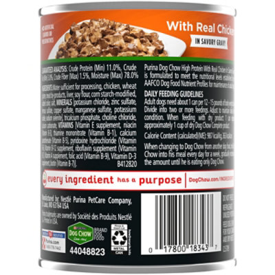 Purina Dog Chow Dry Dog Food, Complete Adult With Real Chicken, 48 lb. Dish up daily servings of Purina Dog Chow Complete Adult with Real Chicken dry dog food to give your dog the essential nutrition he needs to keep up with you and your healthy life together. This delicious food for dogs made with real chicken and other high-quality ingredients is carefully crafted to support your dog's health and also has a ...