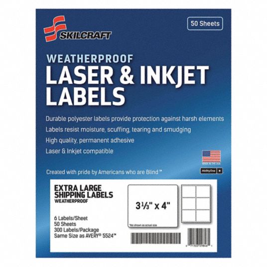 White Vinyl Waterproof - Weatherproof Shipping Labels Avery® 5524 Use Avery® 5524 Template With these White Vinyl Labels and a Laser Printer you can create labels for Harsh Conditions, Outdoor Use, Freezers, Underwater, etc, with Standard M/S Word or other labeling software. Then print with your laser printer for professional-looking results.