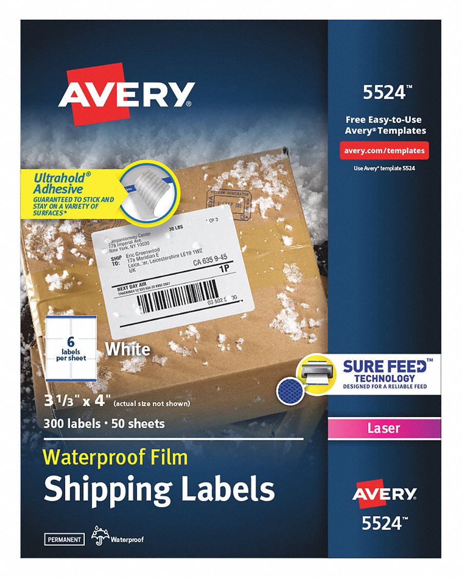 Avery® 5524 Waterproof Shipping Labels 3-1/3-inch x 4-inch with ... Easily create unique, customizable labels with the free designs, templates, and mail merge tools at avery.com/templates. Guaranteed to stick and stay, these ...