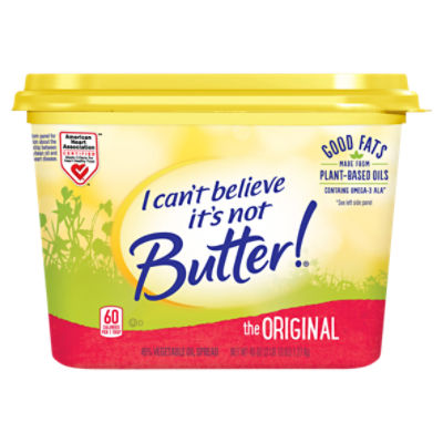 Unilever wins 'I Can't Believe It's Not Butter!' labeling appeal "I Can't Believe It's Not Butter!" spray really isn't butter, U.S. appeals court says 9th Circuit ruling affirms dismissal of false advertising class action By Blake Brittain April 18 (Reuters ... Calories in I Can't Believe It's Not Butter! Original Soft Spread and ... Calories. 60. Fat. 6g. Carbs. 0g. Protein. 0g. There are 60 calories in 1 tbsp (14 g) of I Can't Believe It's Not Butter! When Is Butter Not Butter? When It's A Spray, 9th Circ. Says Law360 (April 18, 2023, 8:11 PM EDT) -- A split Ninth Circuit's opinion Tuesday noted that, over 125 years ago, the U.S. Supreme Court decided the age-old question of whether a tomato is a fruit ... 10 Healthy Butter Substitutes Worth Buying in 2020 - Eat This Not That 7. Miyoko's Vegan Butter. Unlike some other vegan butter substitutes, you can use this brand for baking and cooking. Plus, it's also free of palm oil and is soy, lactose, and gluten-free, says Palinski-Wade, making it a versatile choice for many shoppers. 8.